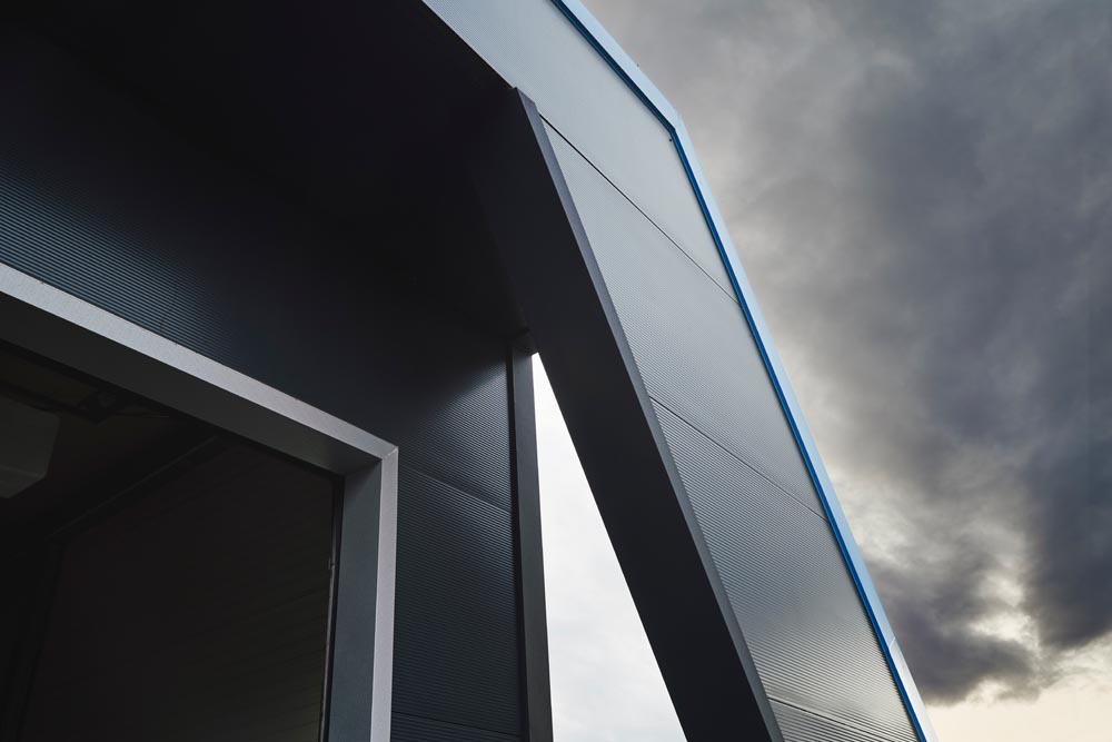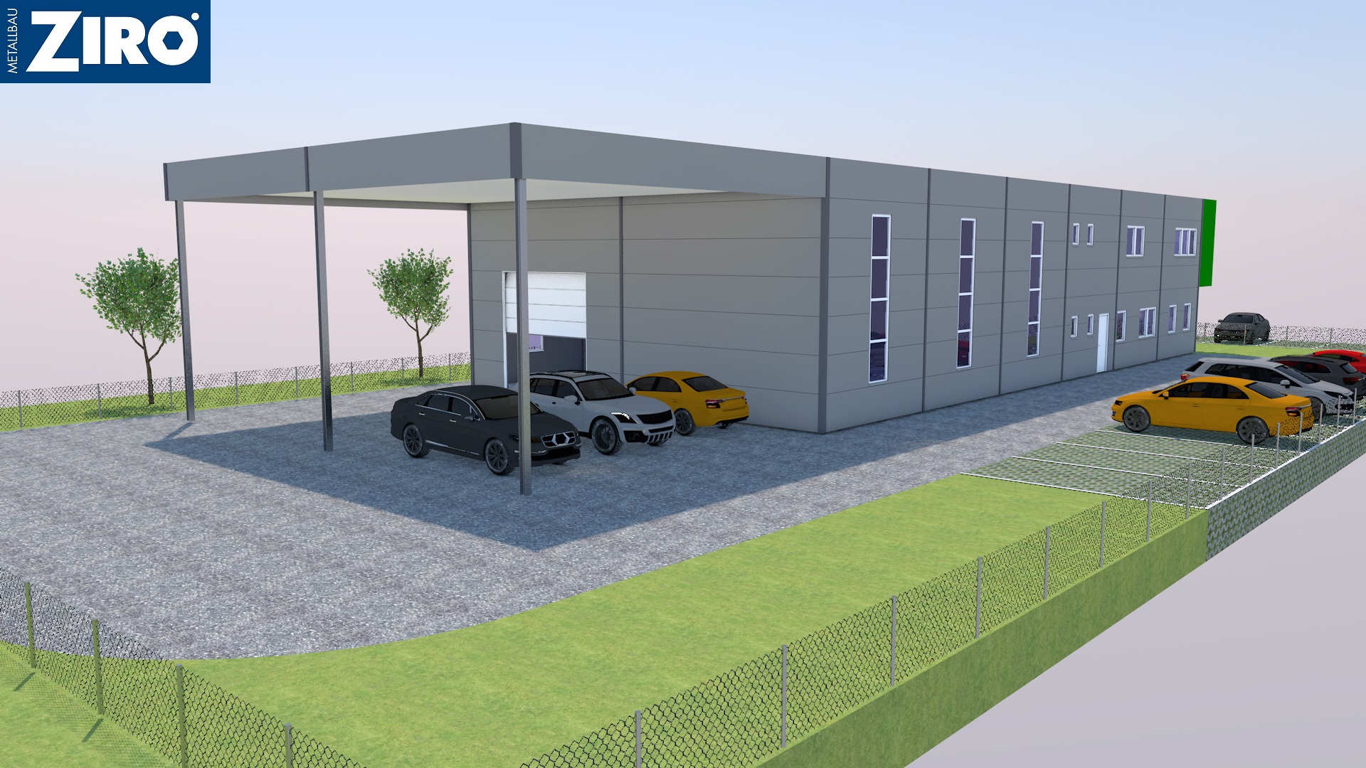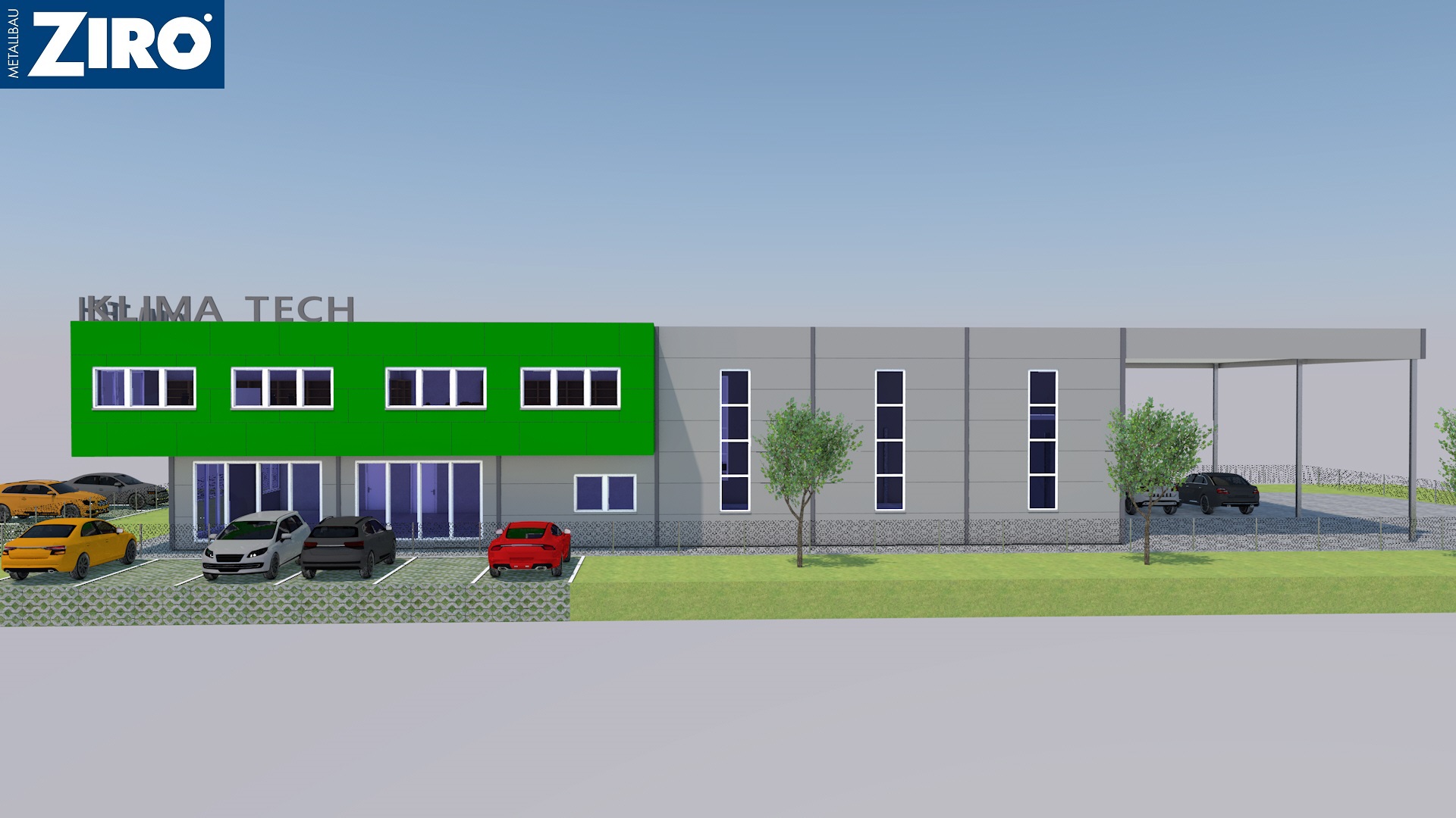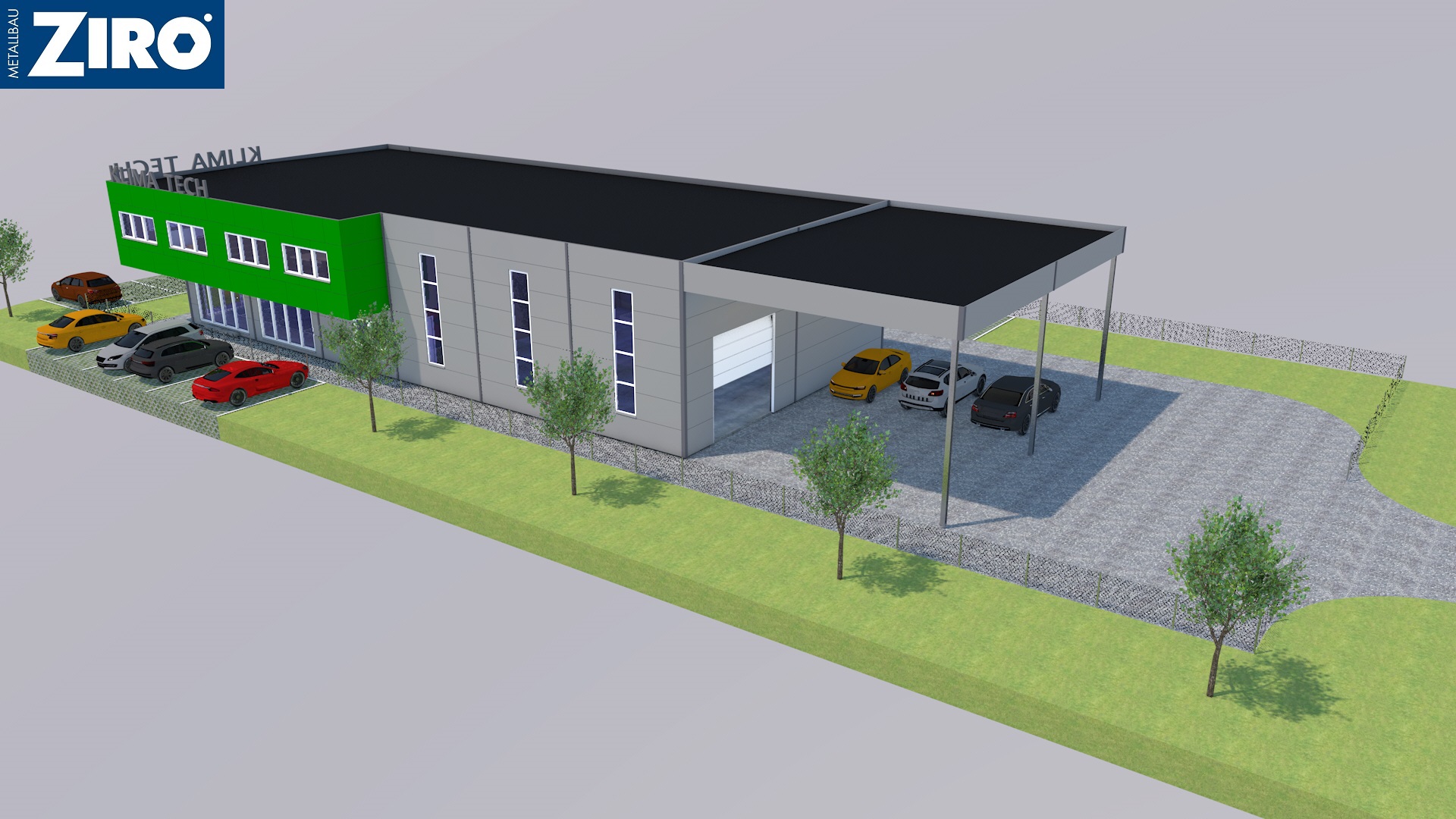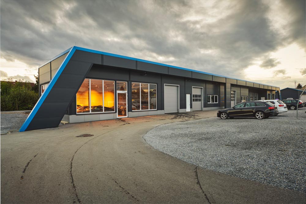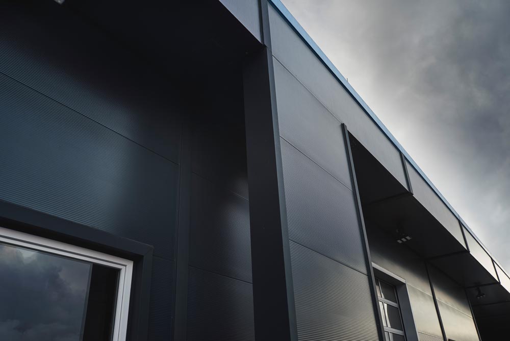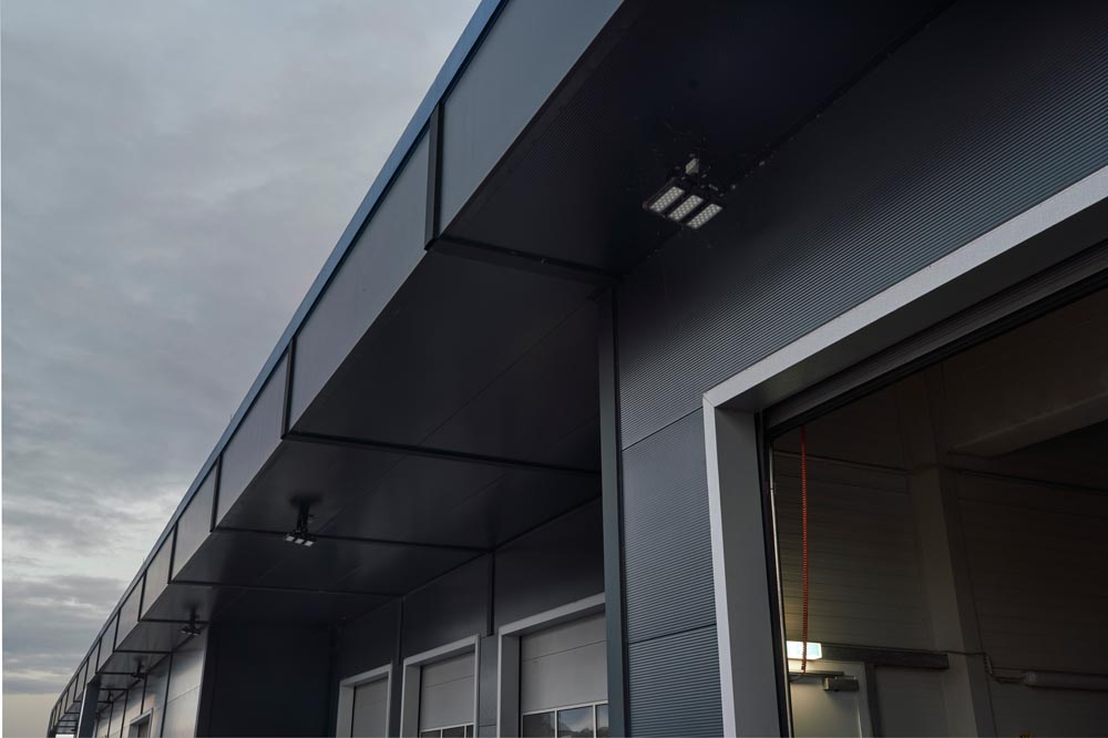 - Der moderne Paneelbau umhüllt die Lager- und Büroflächen mit einer sehr eleganten und modernen Gebäudefassade = zeitlose Eleganz
