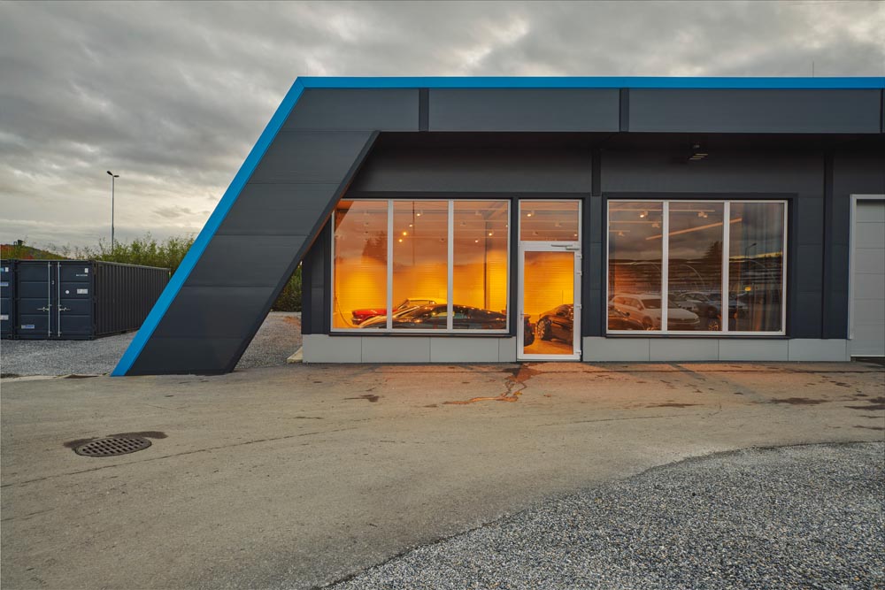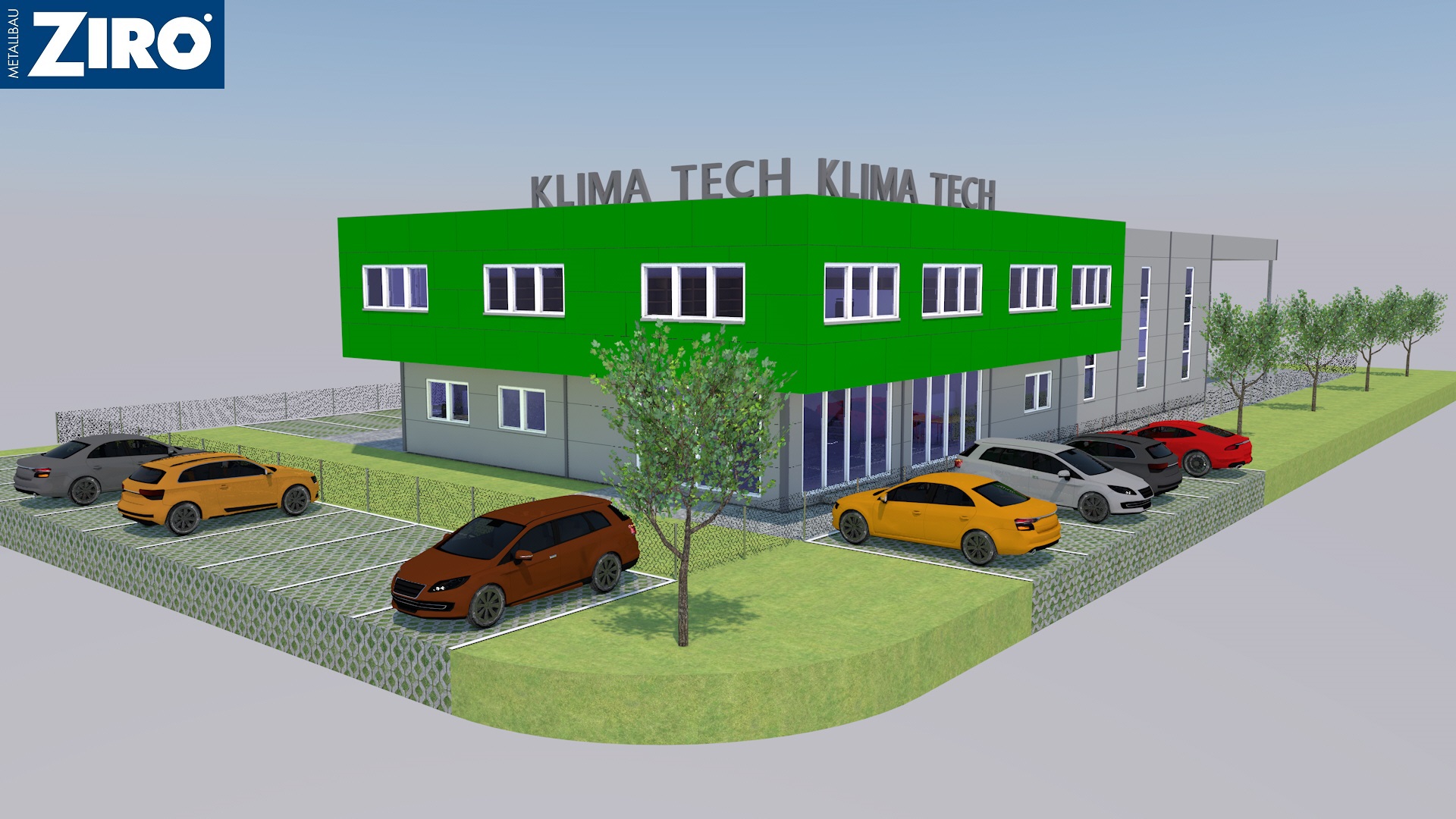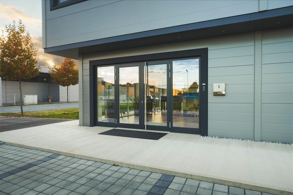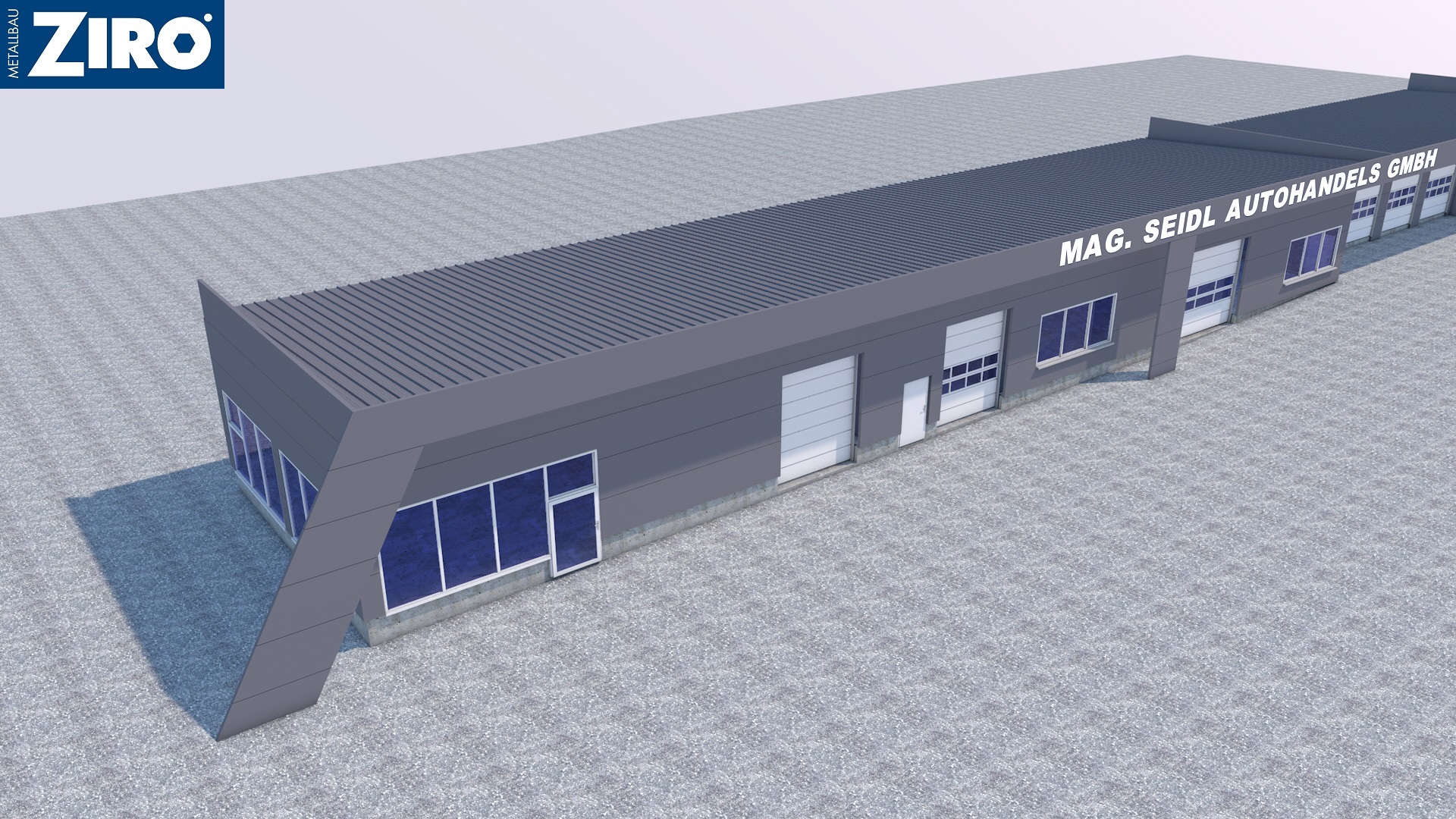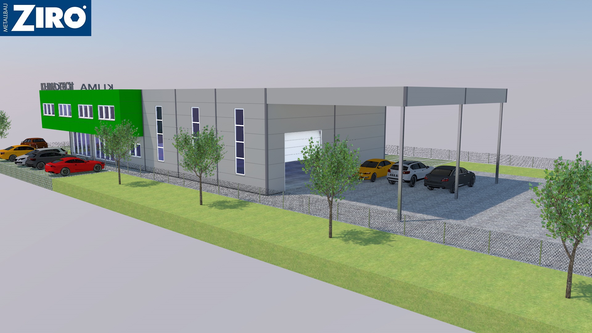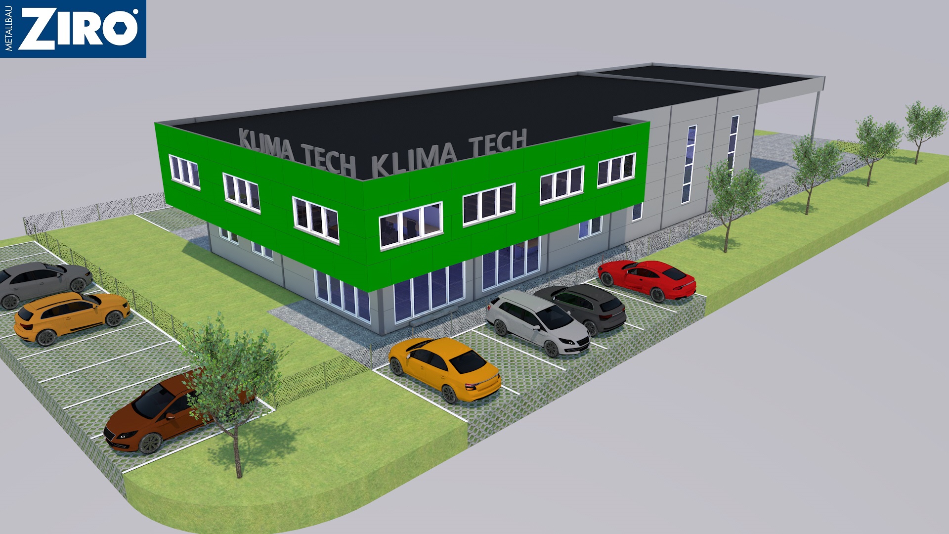 - Der moderne Paneelbau umhüllt die Lager- und Büroflächen mit einer sehr eleganten und modernen Gebäudefassade = zeitlose Eleganz