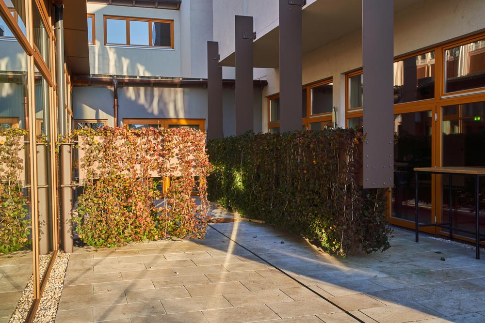 - Produktive Arbeitsatmosphäre: Helle Materialen – viele Glaselemente – viel natürliches Licht = Transparenz